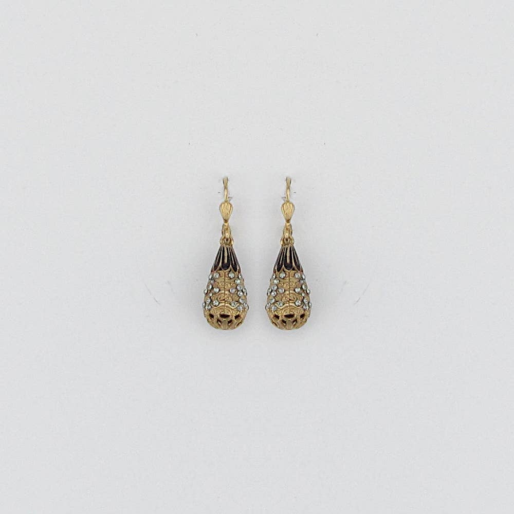 Finely detailed teardrops combining tiny Swarovski crystals and hand enameling
