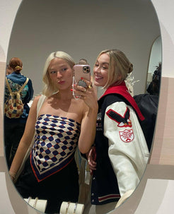 The checkerboard silk draped around your neck, promising a playful harmony of strategy and fun. One move closer to your destination. Capturing the gaze of any onlooker. They wonder which step you will take next, dazed and confused you captivate any opponent.