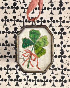 Clover with Bow ~ Handmade Art Locket Ornament