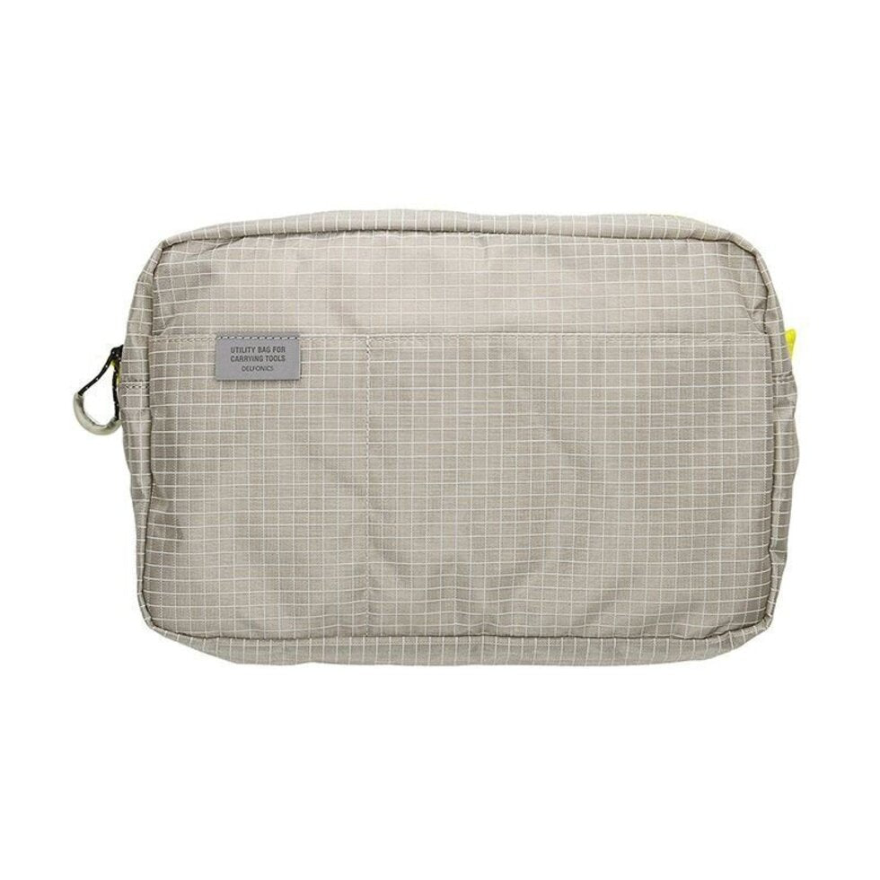 Total of seven pockets, large and small. The pocket on the back has a button. There are four pockets with dividers on the inside, which can functionally store small items such as smartphones, makeup products, notebooks, and writing utensils.