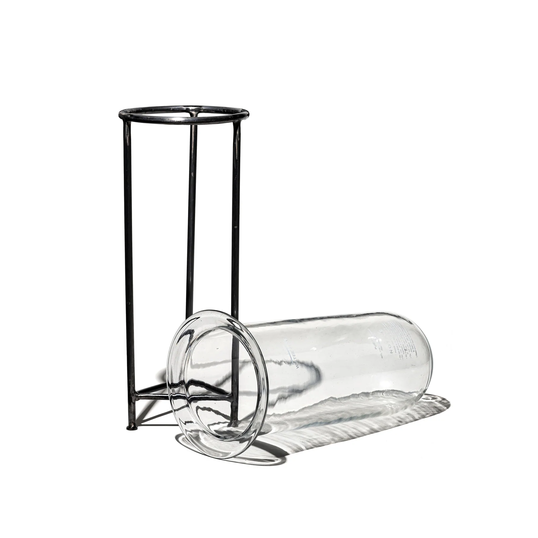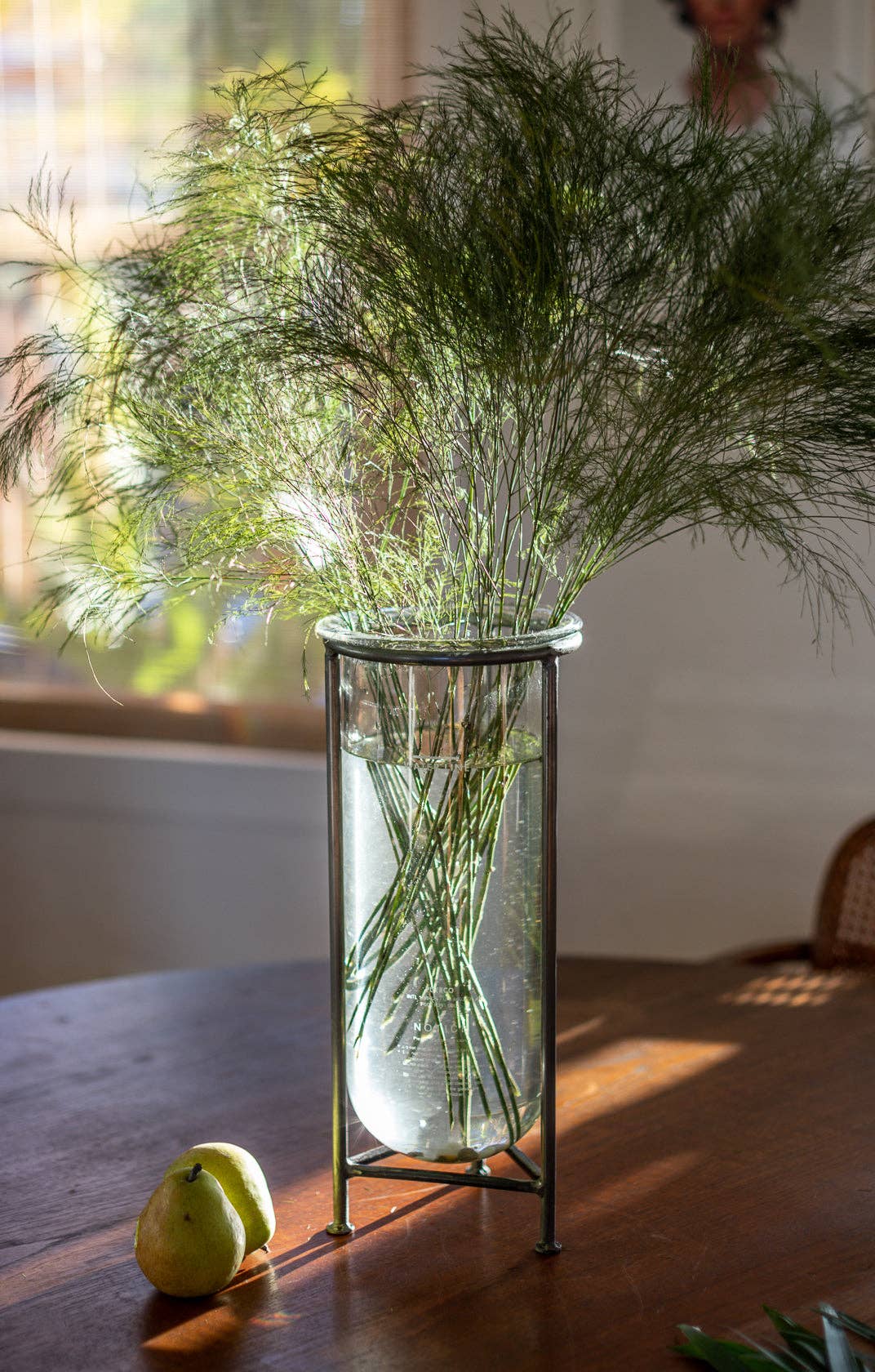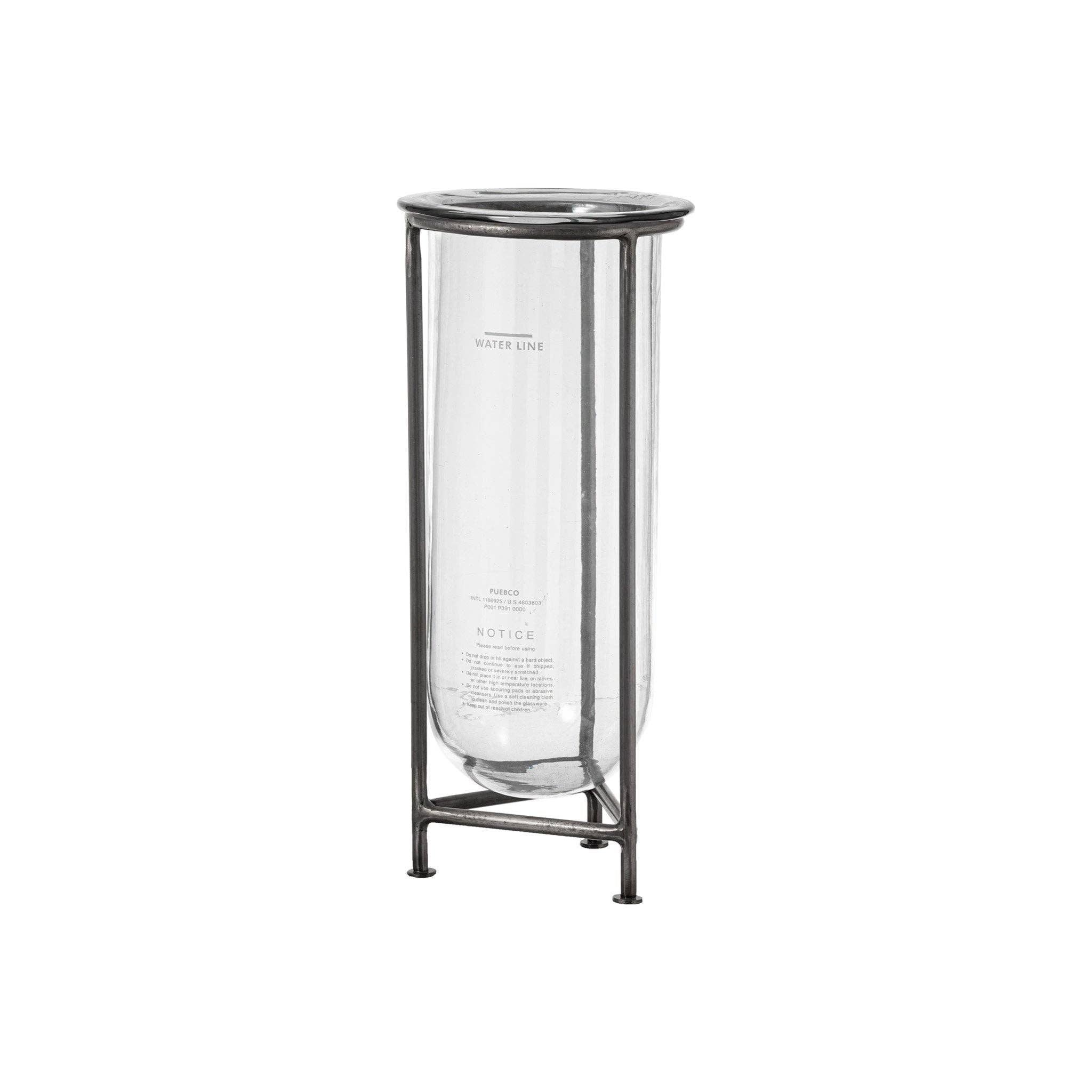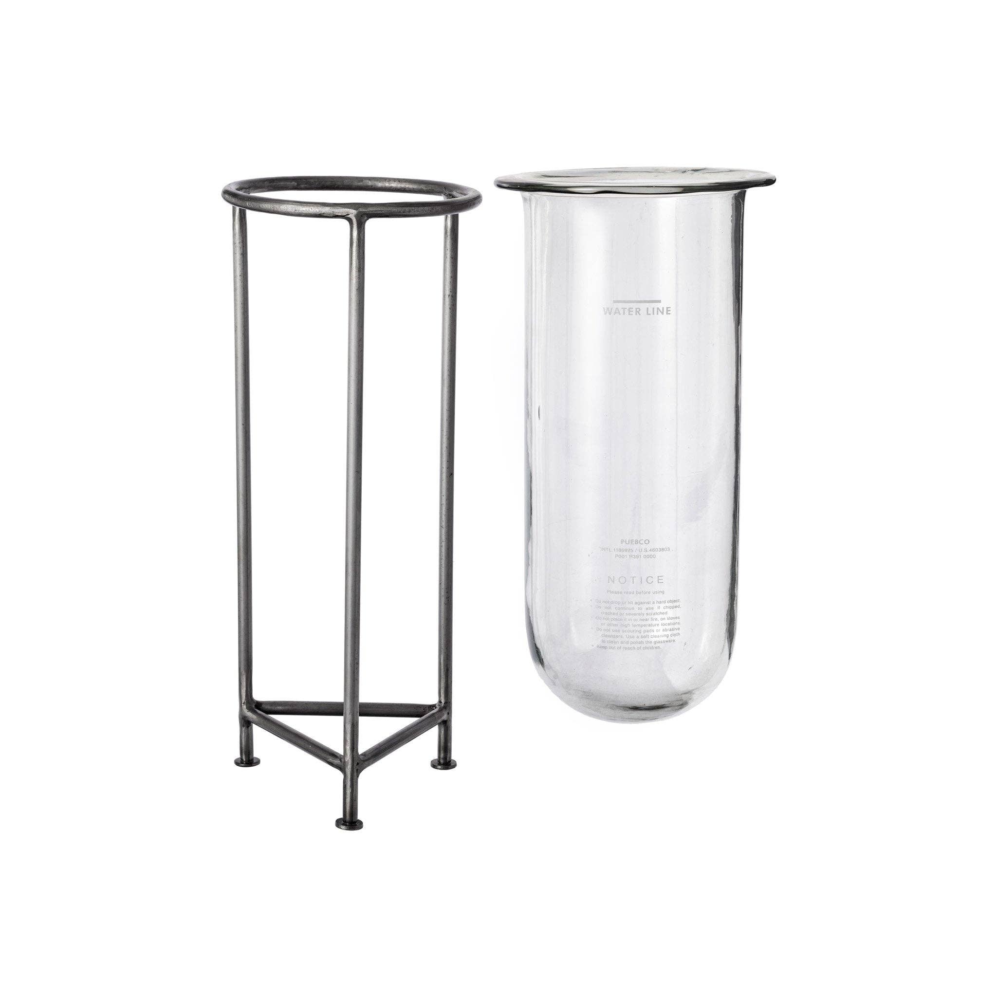 Display fresh cut flowers or a dried bouquet in the Glass Vase With Stand. With a handy water line and instructions to maintain its appearance, this delicate vase rests upon a sturdy steel base to elevate what's inside.