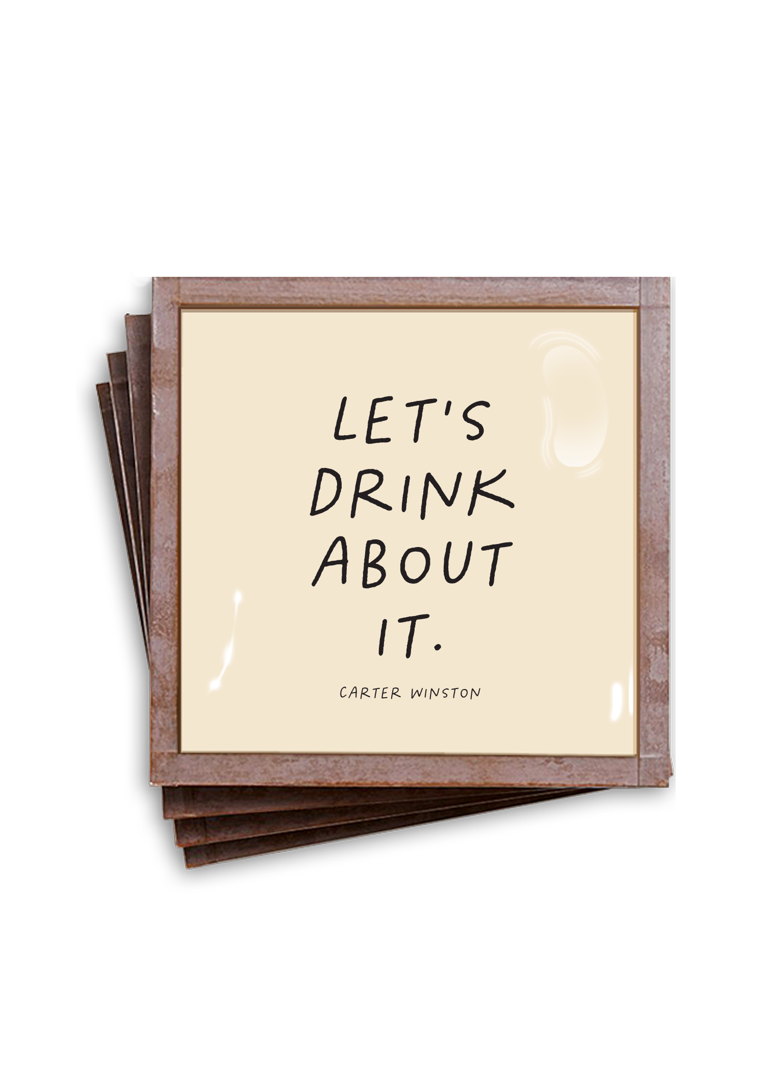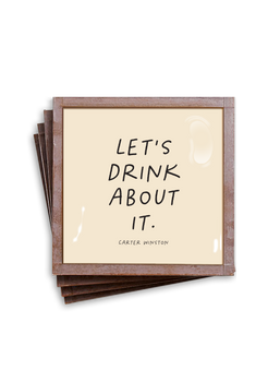 For the nights when confession comes with a twist, this set keeps the mood light and the table spotless. Classic script reads I have mixed drinks about feelings on a warm cream ground, the kind of line that earns a smile before the first sip. The glass catches candlelight, the antiqued copper frame glows like a good secret, and suddenly the bar cart has a sense of humor.