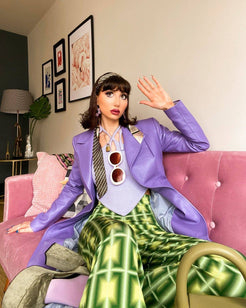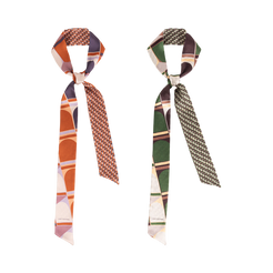 How to Wear a Silk Skinny Scarf: * As a scarf: wear it around the neck. You can tie a bow or let the end hang loose. * As an accessory to a top, under a collared shirt. * As a vest: loosely worn over the shoulders, framing a top or jacket. * As a hair accessory: as a headband or over a low ponytail. * As a bag accessory: Around your purse for a pop of color. * As a belt: dress for a high-waisted look over a dress or with pants. * Style it any way you want in your own mood and creativity!