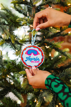 Whether you're naughty or nice, this cheeky needlepoint ornament will make the season bright. Backed in luxe velvet.