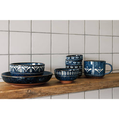 A soothing night-sky blue is punctuated by a mosaic of radial patterns. Tranquil yet intriguing, the Nightbloom mug breathes new life into a timeless color combination.