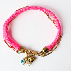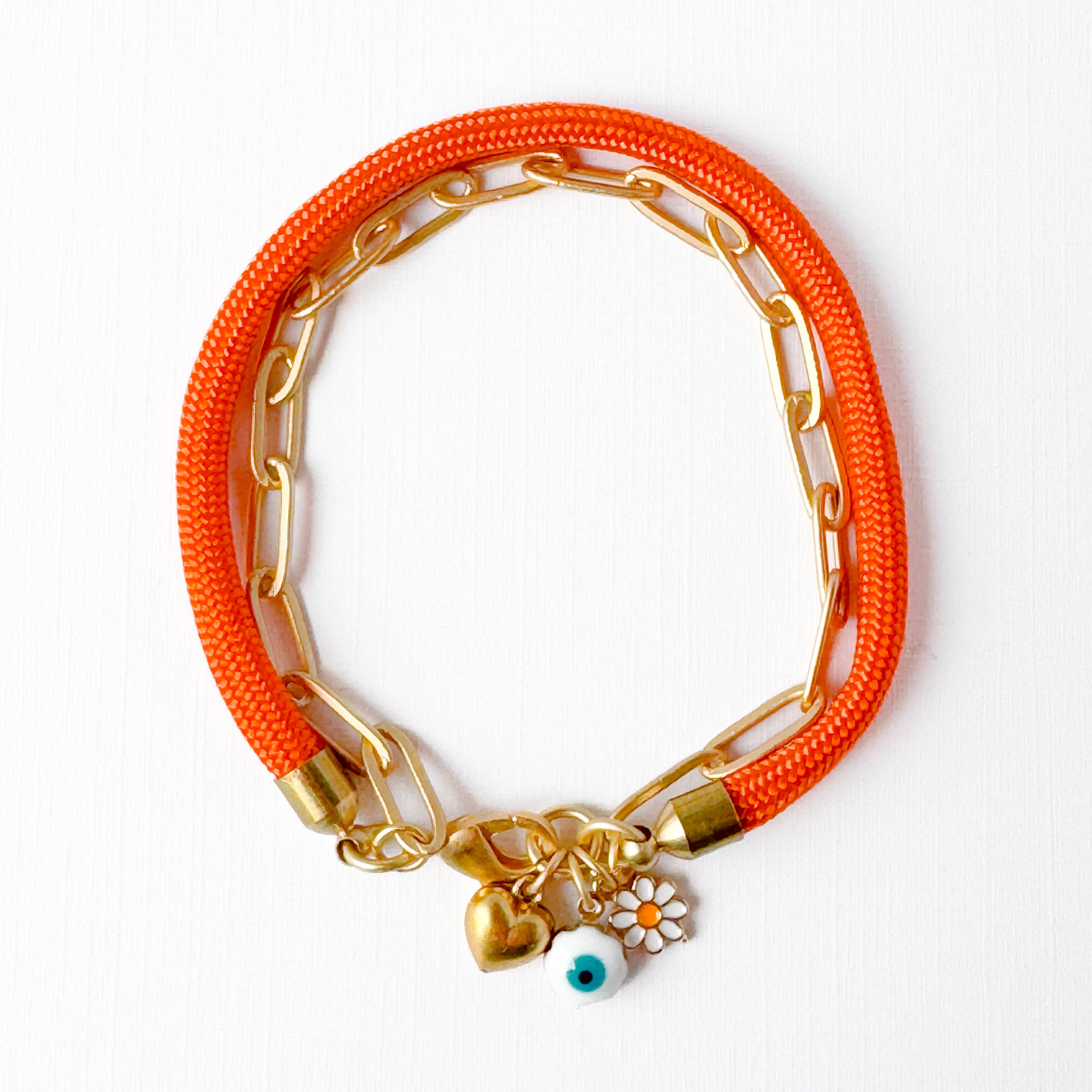 Add a touch of fun to your style with this handcrafted paracord and paperclip charm bracelet.