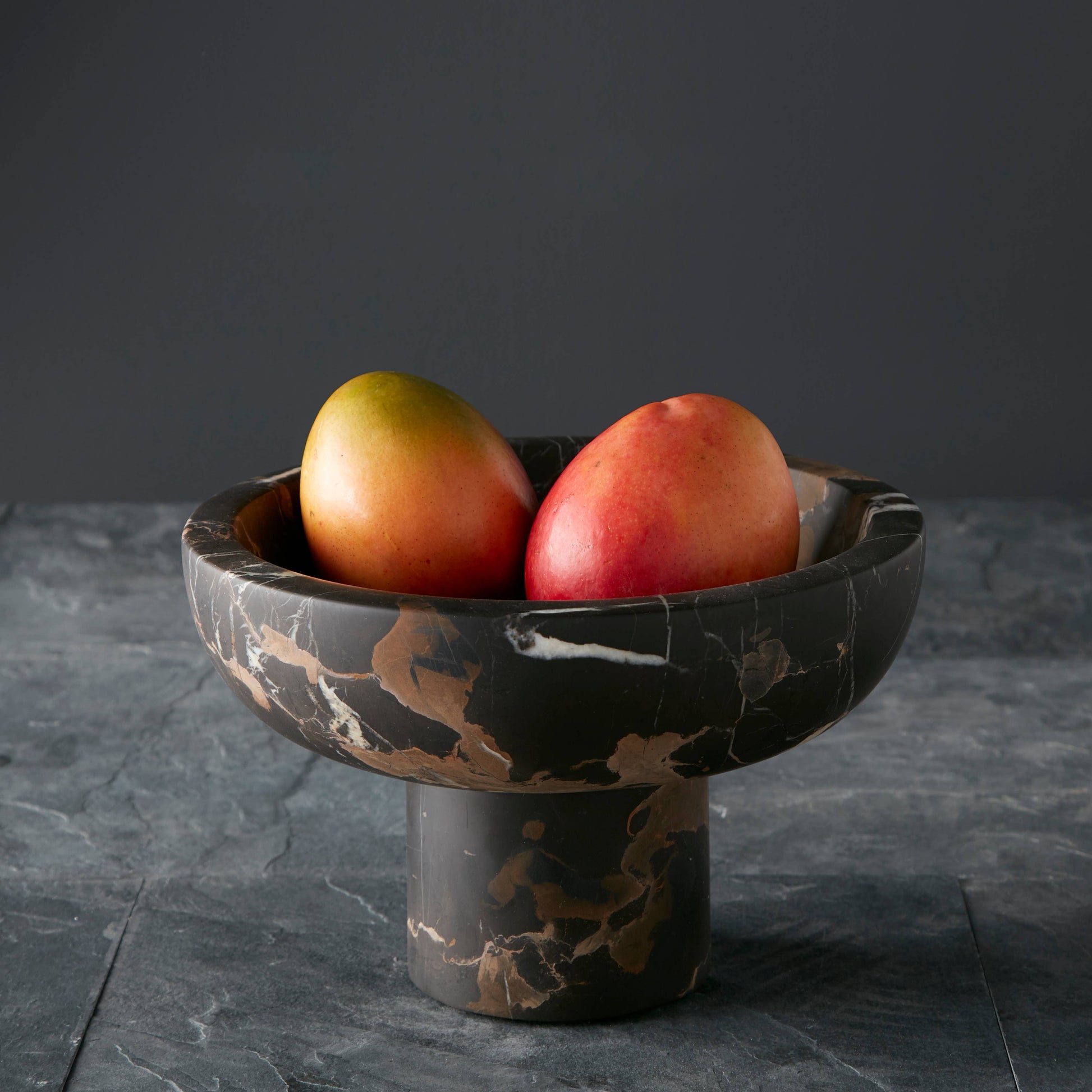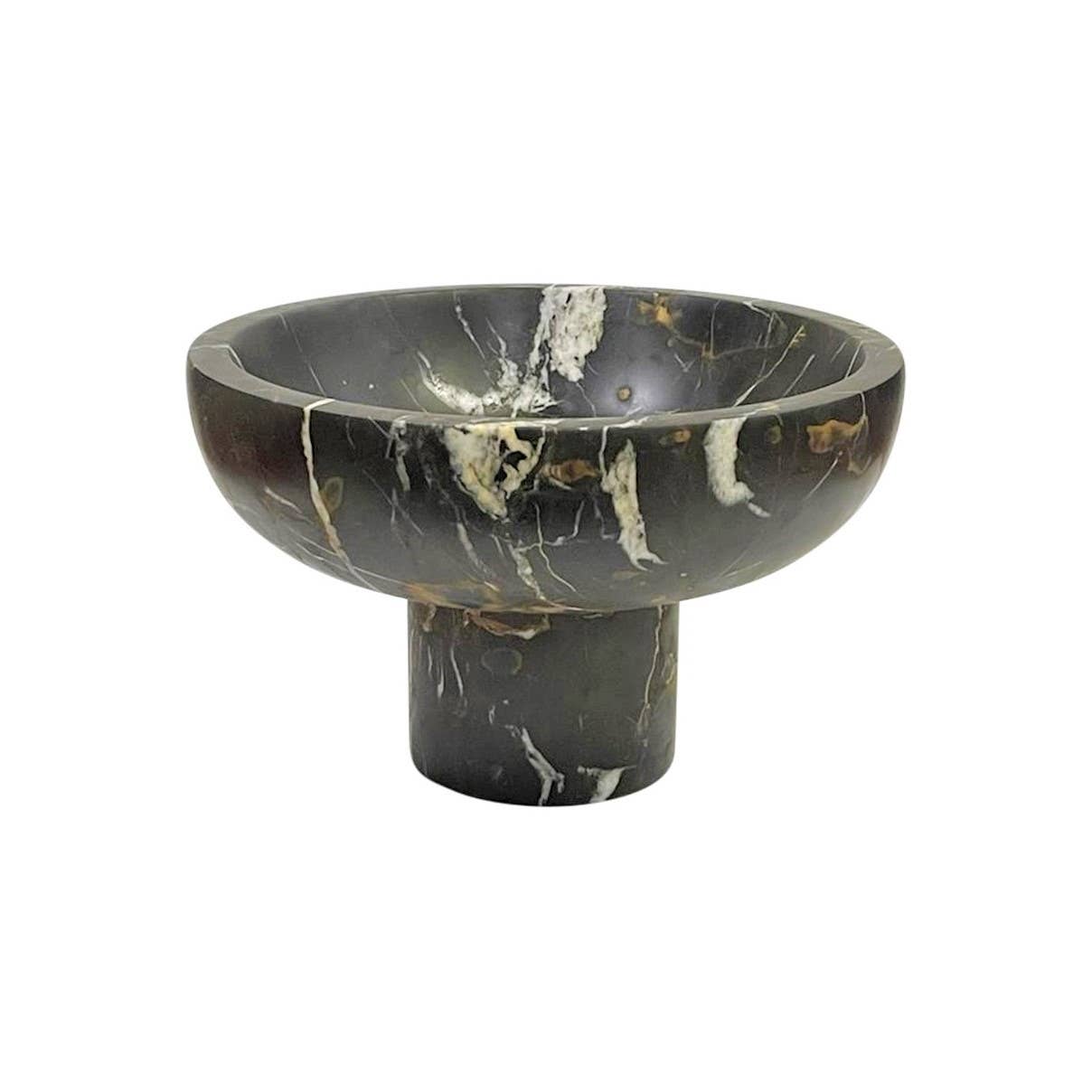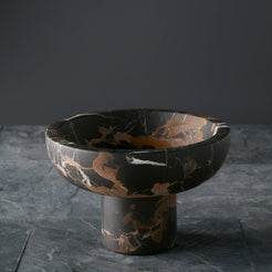 Selene Collection 10"Black and Gold Marble Honed Finish Footed Bowl
