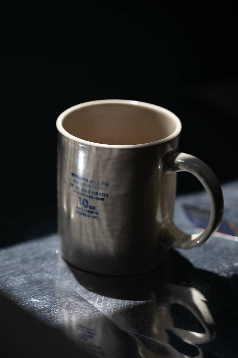 This remote factory in China first told us they could not accept any orders from Japan. They said, "we cannot guarantee the quality the Japanese people desire." It is very difficult for them to stay in business with mass producing low cost, high quality items so many of their products would not meet the desired standard. It was this rough production combined with using locally found clay that produced this very appealing mug. It looks like it belongs in an American diner where the mug doesn't care about looking identical to the other mugs. Do you really need a neat and high quality mug when you are drinking coffee? Instead of using unnecessary glaze to finalize these mugs, we just sent them our stamp and ink.