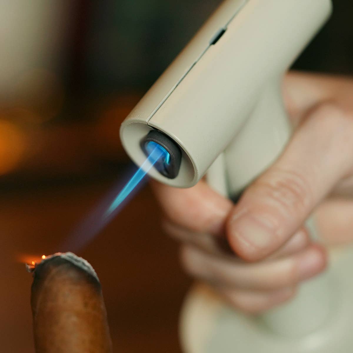 T-Torch transforms ignition into effortless design. Sleek T-shaped form, refined metallic finish, and a circular base make it both striking and stable. A single press delivers precise fire, while the extra safety cap ensures secure use. From candlelit dinners and cigar lounges to exquisite cooking and camping adventures, T-Torch blends function with elegance. It’s not just a lighter—it’s a design statement in every spark.