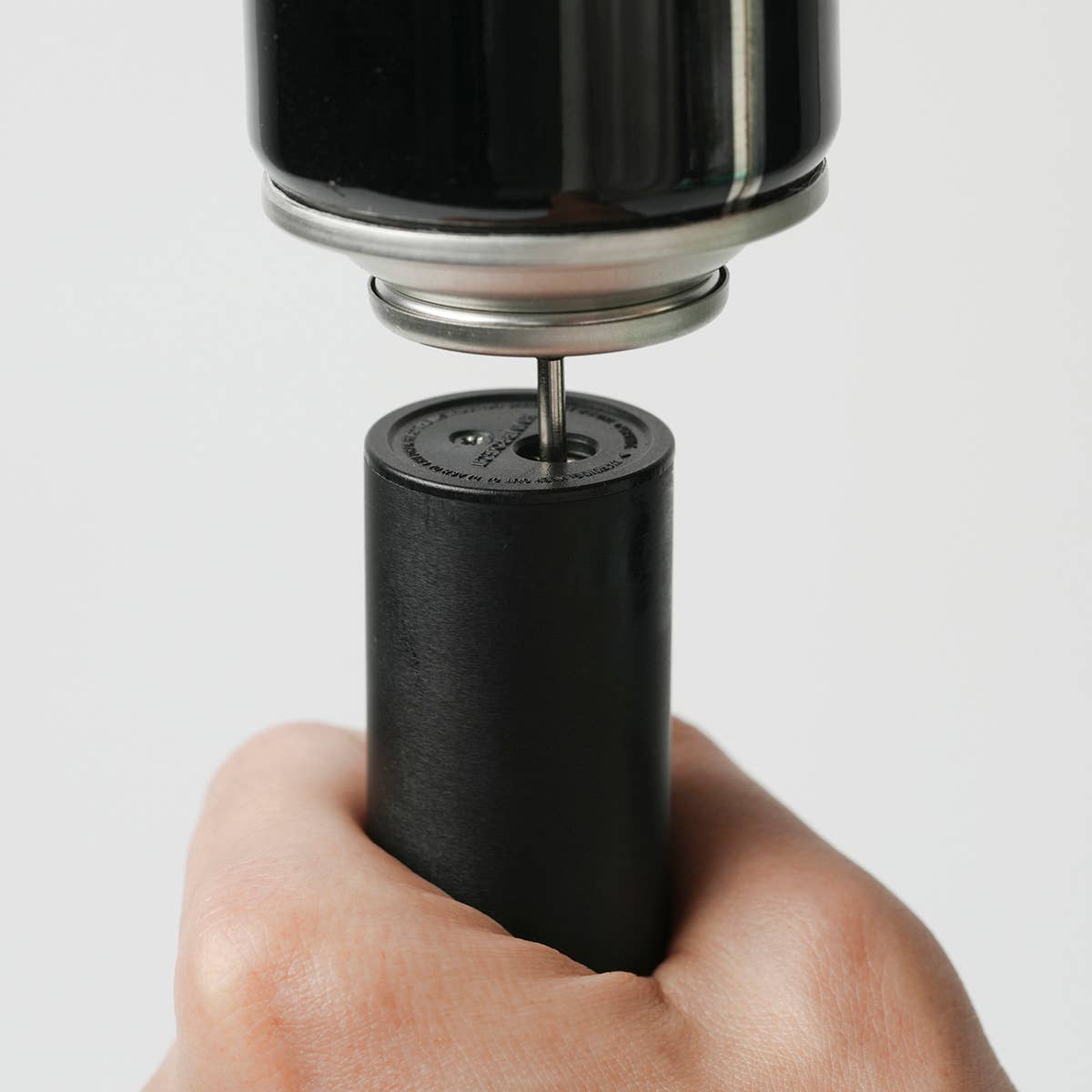 Gas: LPG Cartridge (butane) Material: zinc alloy, aluminum Dimension: Torch 75*28*135mm / Base Ø80*8mm / Cap 54*30*28mm Weight: Torch 187g / Base 10g /
