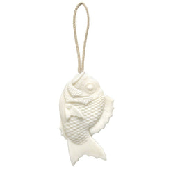 This soap comes in the form of the Japanese celebratory fish, the bream! This beautiful, delicate shape was created using a process based on the wooden mold used to make the Japanese sweet called Rakugan. Tamanohada soaps are made from entirely plant based material, from natural plant oil. This soap series is made to give your skin an extra gentle care, and thus could be used for washing your body and also your face. It's texture is between liquid and milk, leaving a delicate moisturize protection and scent to your skin. Leaving your soap on a small dish will also lightly perfume your bathroom. A beautifully gift boxed "soap on a rope" from Tamanohada Soap Co.