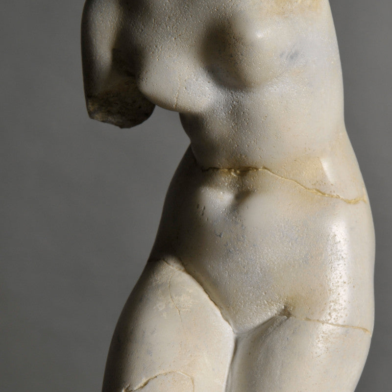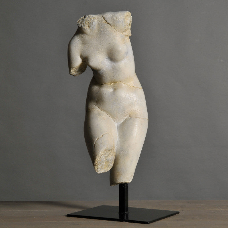 Venus is the Goddess of love, seduction, and beauty in Roman mythology, the equivalent of the Greek goddess Aphrodite. The classical etymology of her name is the Latin verb "vincire" (tie, enchain), because she unites fire (masculine principle) with water (feminine principle), which brings about life. This vestige of a Roman statue perfectly illustrates the beauty canons of the time.